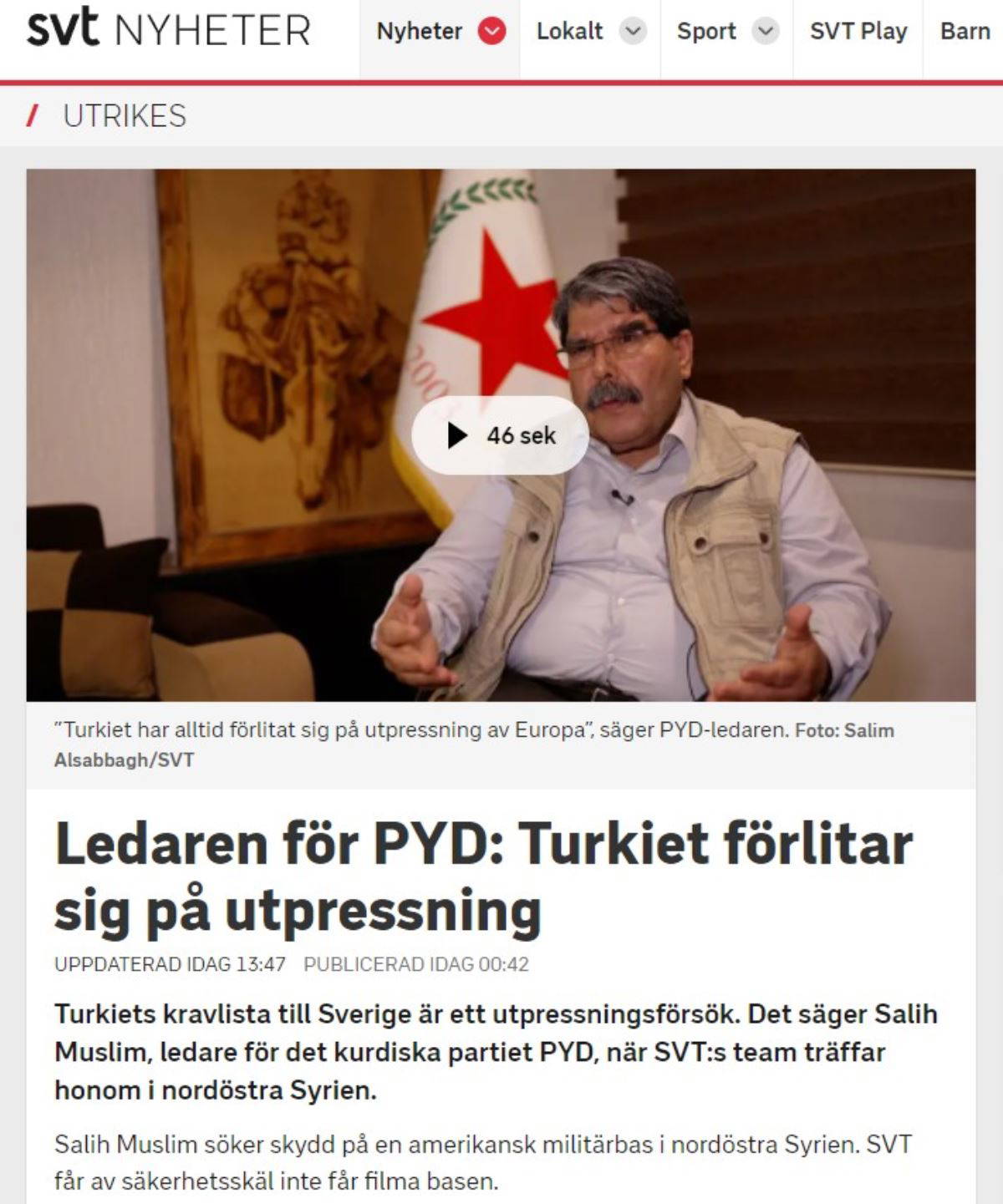 SVT'nin haberinde, "Salih Müslim, Suriye'nin kuzeydoğusundaki bir ABD askeri üssüne sığındı. SVT, güvenlik gerekçesiyle üssü filme almadı" ifadeleri yer aldı.