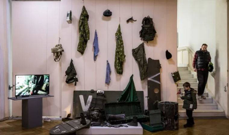 Ukrayna'nın başkenti Kiev'de, Ukrayna Ulusal Tarih Müzesi araştırmacısı Oleksandr Lukianov ve ekibi Irpin ve Buça'daki çatışmaların ardından bölgede bırakılan Rus askerlerine ait eşyaları sergilemeye başladı.