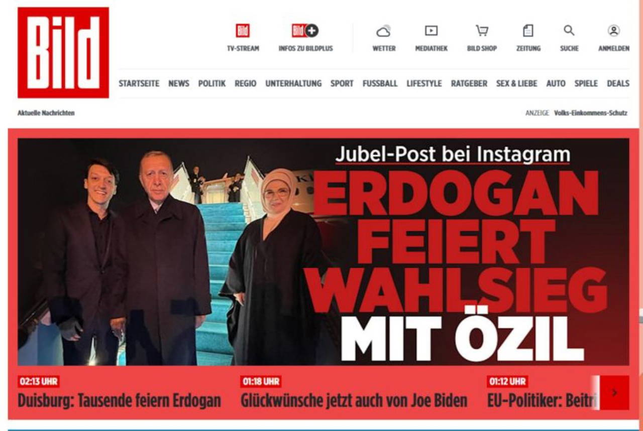 Alman Bild gazetesi, Erdoğan’ın seçim zaferini kutlarken yanında eski Alman milli futbolcu Mesut Özil’in de bulunduğuna dikkat çekti. “Erdoğan seçim zaferini Özil’le kutladı” şeklinde başlık attı.