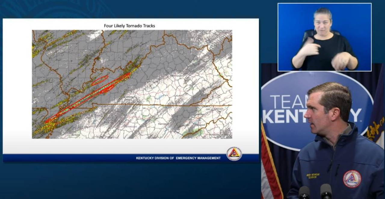 Eyaletin özellikle Mayfield kentinde, bir fabrikanın yıkıldığını ve burada toplu ölümler olduğunu belirten Vali Beshear, eyalet genelinde yaşamını yitirenlerin sayısının 70 ila 100 arasında olabileceğini vurguladı. Eyaletin büyük çoğunluğuna henüz elektrik verilemediği ifade edildi.