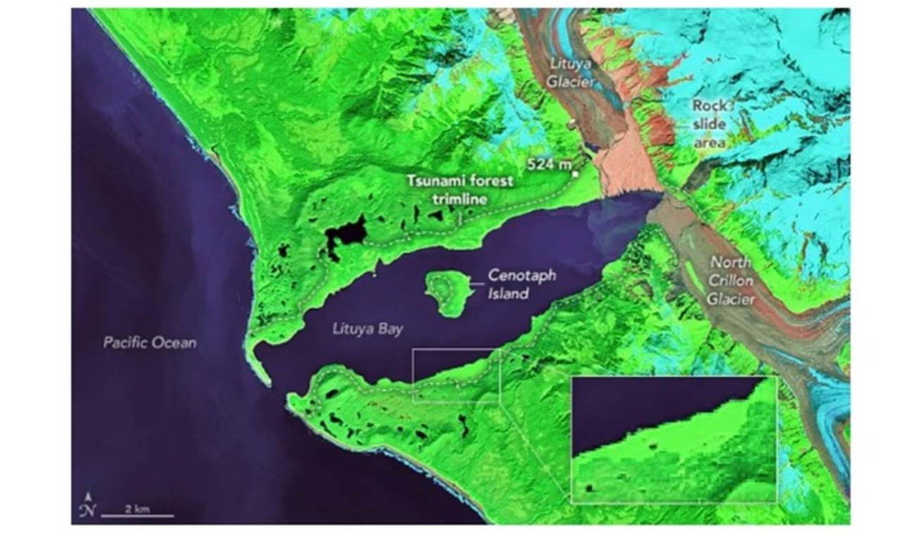 Ancak 1958 yılında, Alaska'nın güneydoğusunu vuran "kayıtlara geçmiş en büyük tsunami" o kadar büyüktü ki, etkileri altmış yıldan uzun bir süre sonra bile uzaydan görülebiliyor.