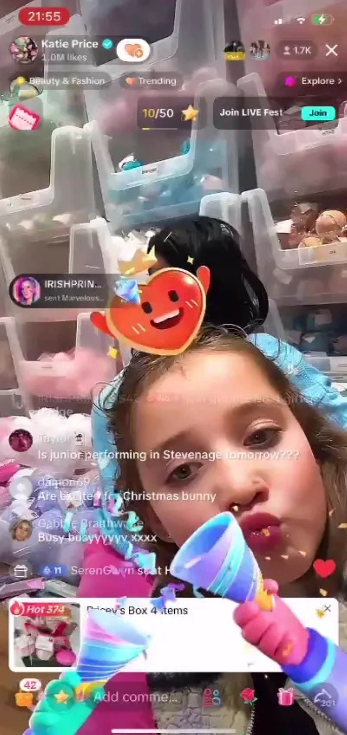 Bunny ayrıca, Katie'nin mali sorunları ve annesinin dağınık soyunma odasıyla ilgili soruları yanıtladığı 'hayranlarıyla' bir canlı yayın da açtı.