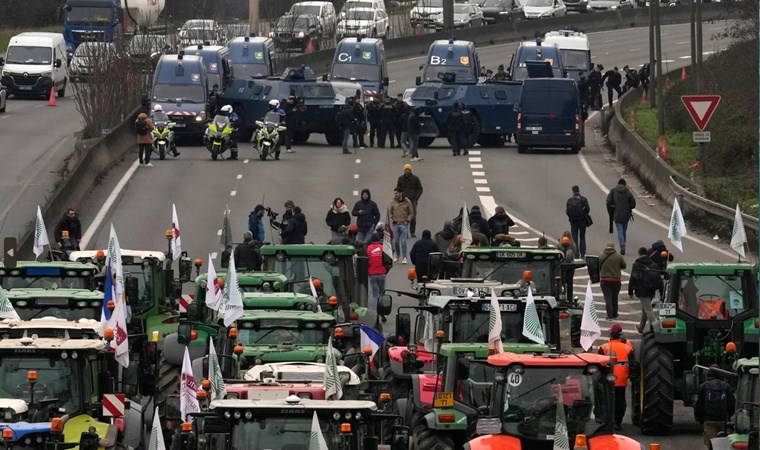 Fransa’da süren protestolar sırasında, Paris’in tarım ticaretinin kalbi olan Rungis’e çıkan yolu kesen 18 çiftçi tutuklandı. O sırada binlerce çiftçi de Paris’i kuşatma hedefiyle, traktörleriyle yollardaydı. Ülke genelinde 100’den fazla barikat kurulduğu bildirildi.