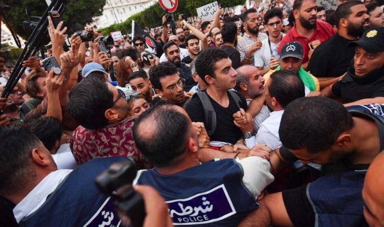 "Tunus Haklar ve Özgürlükler Ağı" tarafından düzenlenen yürüyüş, Habib Burgiba Caddesi'nde gerçekleşti.
