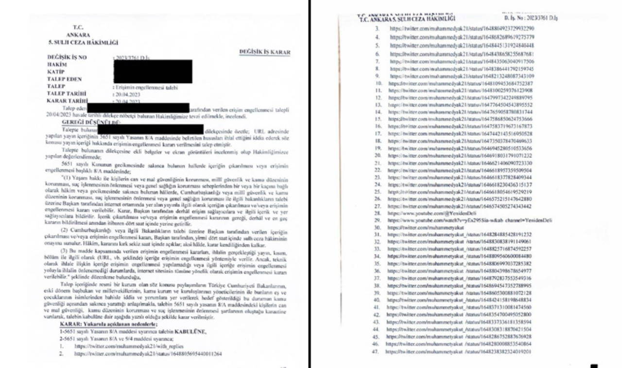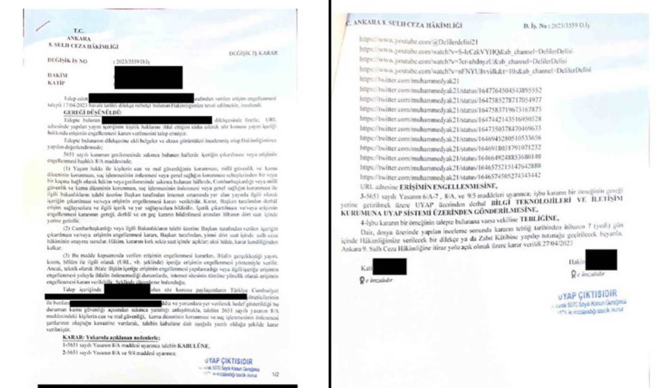 Aşağıda erişim engelleme işlemleriyle ilgili verilen mahkeme kararlarının ve düzenleyici kurum yazışmalarının bir kopyasını yayınlıyoruz."