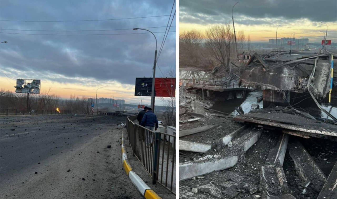 Öğleden sonra Ukrayna askeri araçları, başkent Kiev'i savunmak üzere şehre giriş yaptı. Newsweek'in aktardığına göre, Ukrayna kuvvetleri, Rus tankının ilerlemesini durdurmak için Kiev yakınlarındaki köprüyü patlattı.
