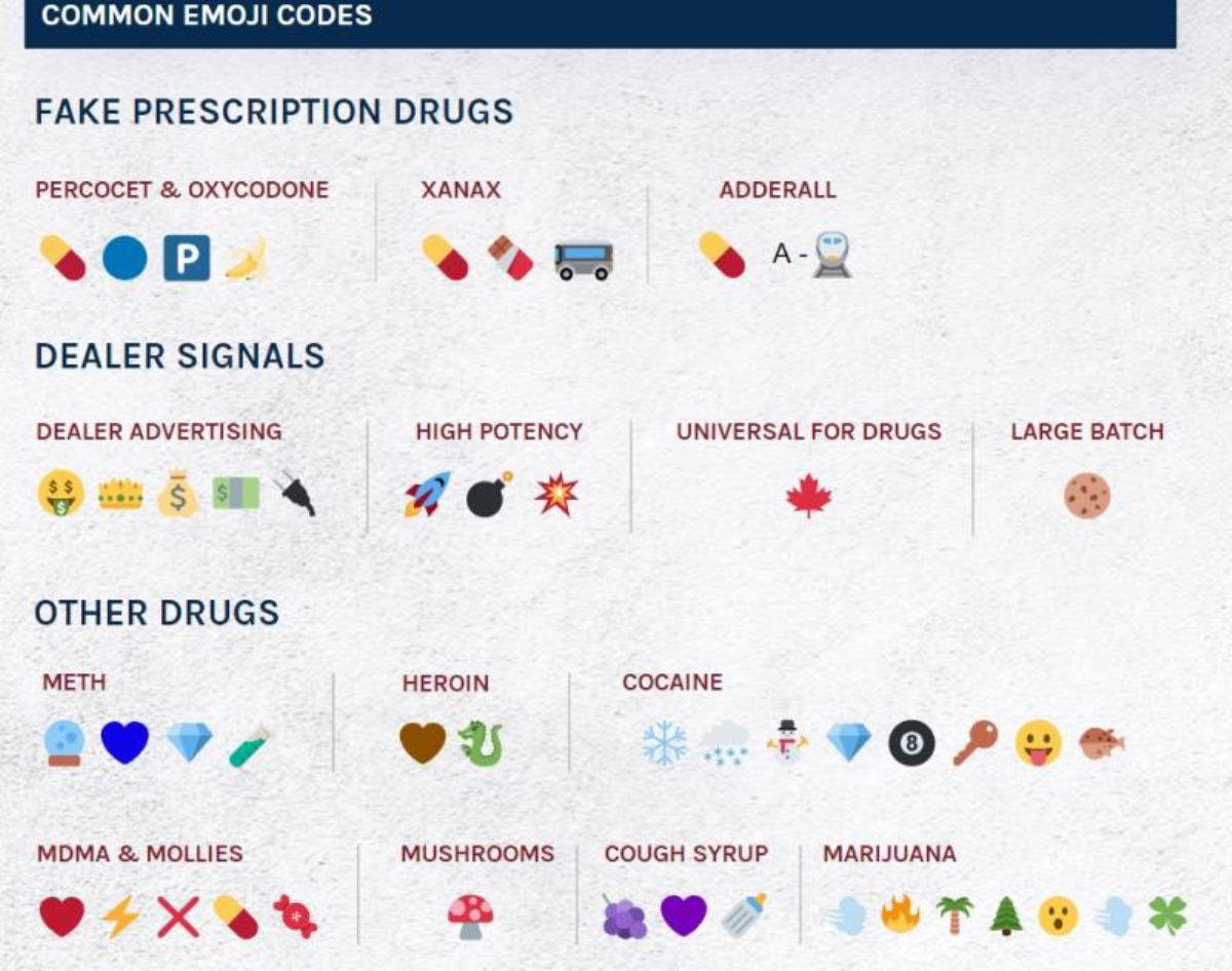 Independent Türkçe'de yer alan habere göre; listede paylaşılanlar arasında kar tanesi emojisinin kokain, pırlanta emojisinin metamfetamin, yonca emojisinin marihuana ve ejderha emojisinin de eroin için kullanıldığı belirtildi.