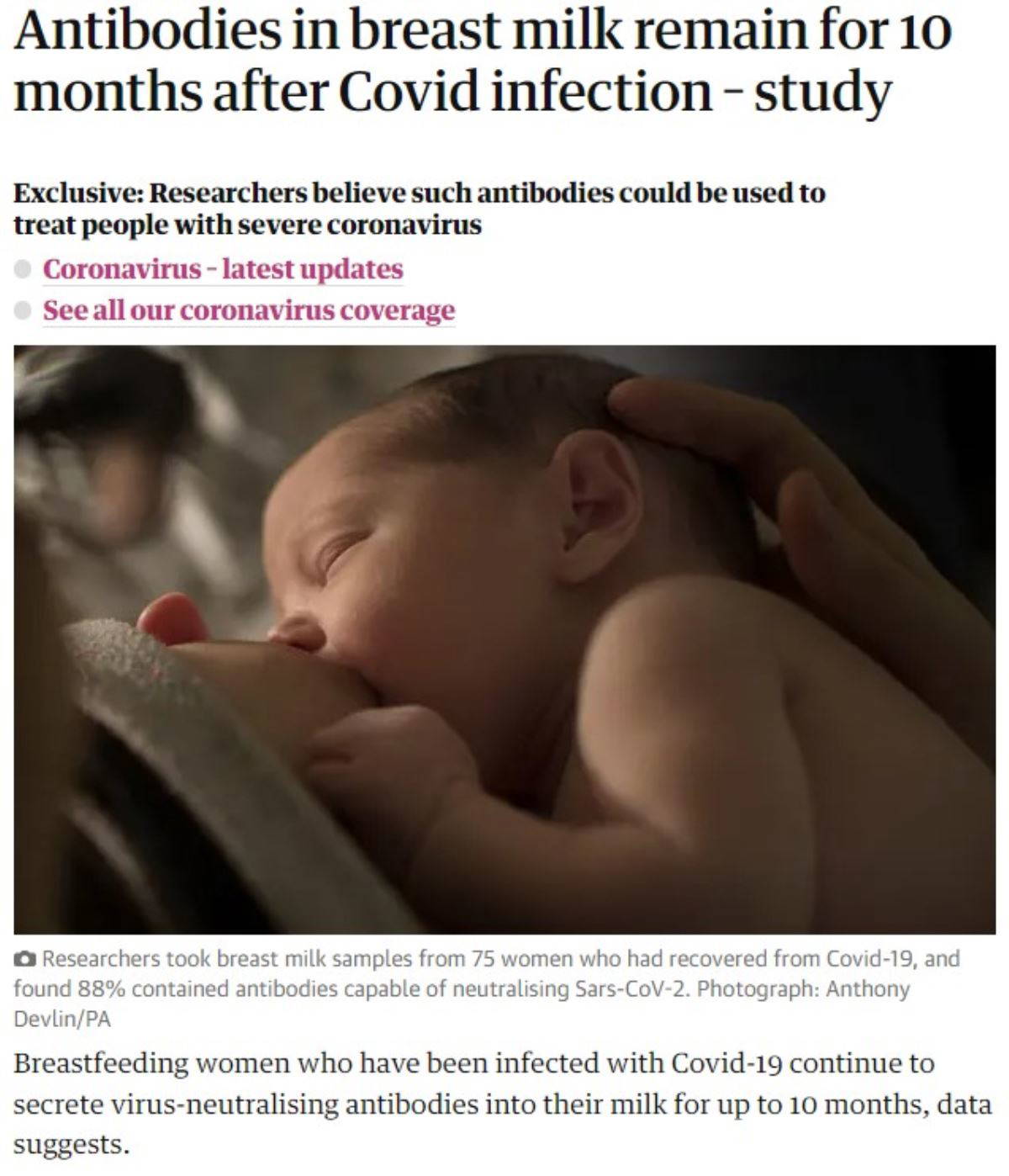 Habere göre, ödemenin yapıldığı tarihin hemen ardından [27 Eylül] Guardian'da, "Antikorlar, Covid enfeksiyonundan 10 ay sonra bile anne sütünde kalıyor" başlıklı bir makale yayınladı.