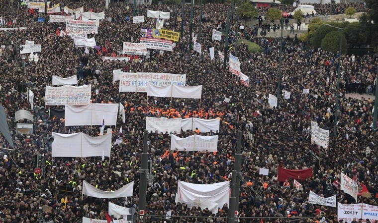 Yunanistan’ın iki büyük işçi sendikasının çağrısıyla düzenlenen 24 saatlik grev, 57 kişinin hayatını kaybettiği kazayla ilgili yürütülen yargı sürecinin yavaş ilerlemesine duyulan öfkenin son göstergesi oldu. Kamuoyunda, hükümetin olayla ilgili hiçbir siyasetçiyi sorumlu tutmaması büyük tepki çekmeye devam ediyor.