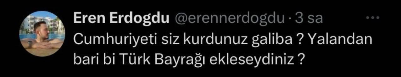 Görselde Ali Babacan'ın bir yurttaşla olan fotoğrafı yer alırken; Cumhuriyetin kurucusu Mustafa Kemal Atatürk'e veya Türk bayrağına yer verilmedi.