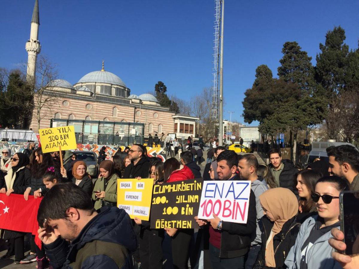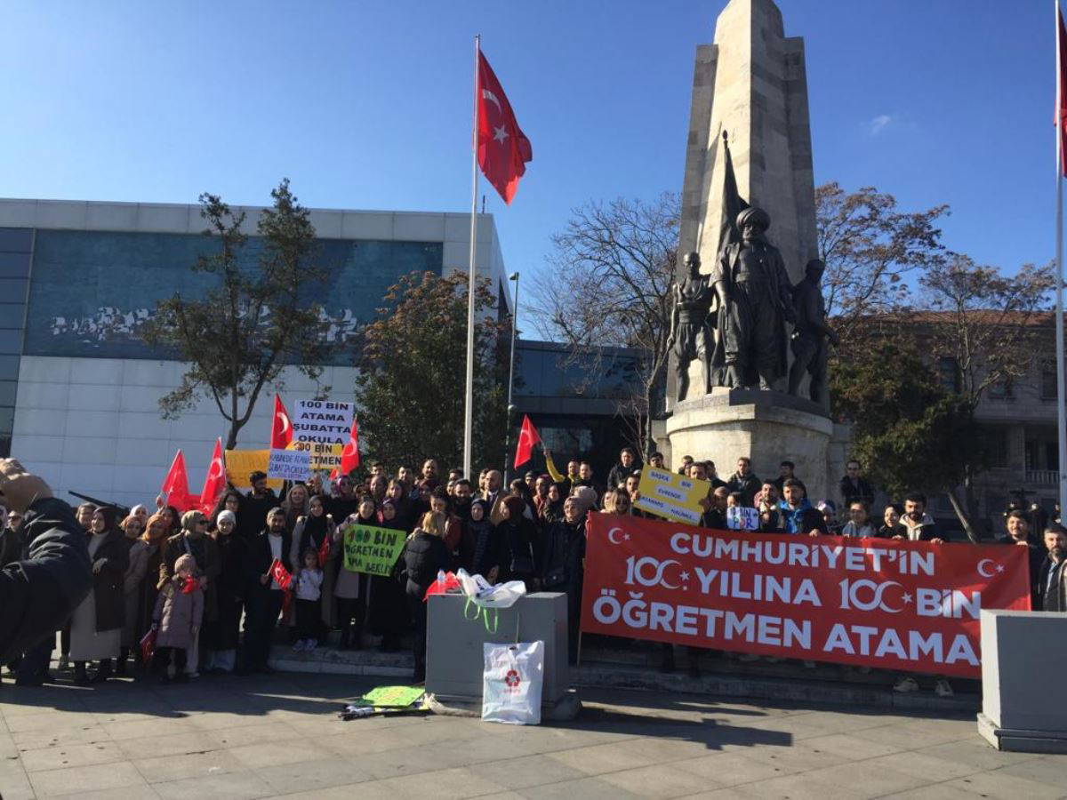 Açıklamada “Bizler artık özel okullarda sömürülmek, mesleğimiz dışında işler yapmak ve işsiz kalarak gelecek kaygısı yaşamak istemiyoruz. Bizler artık geleceğimizi güvence altına almak, hayatımıza yön vermek, kendimizi geliştirmek ve ülkemizin istikbali olan gençlerimizin yüreğinde ve zihninde ışık yakmak, ülkemize hizmet etmek istiyoruz. Bu yüzden öğretmen atama takviminin en kısa süre içerisinde açıklanmasını, hükumetimizden talep ediyoruz. Cumhuriyetimizin 100. yılında 100 bin öğretmen ataması yapılmasını talep ediyor; en kısa zamanda okullarımızda, öğrencilerimizin yanında olmak istiyoruz” denildi.