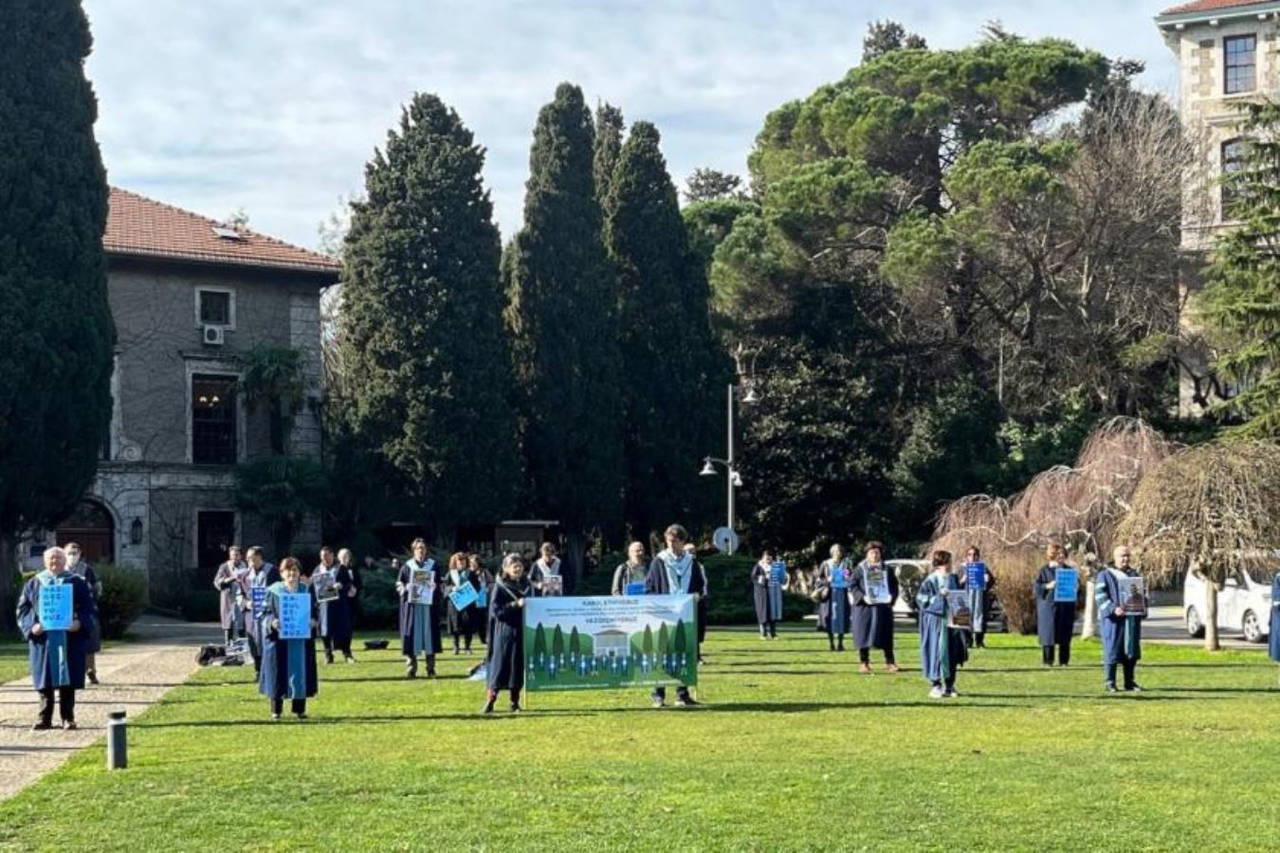 Yaklaşık 10 bin Boğaziçi Üniversitesi mezununun imzaladığı “Mezunlar yuvasından, Boğaziçi Üniversitesi Kampusu’ndan Çıkarılamaz” başlıklı dilekçe rektörlüğe teslim edildi. Akademisyenler rektörlüğe sırtlarını dönerek eylem yaptı.