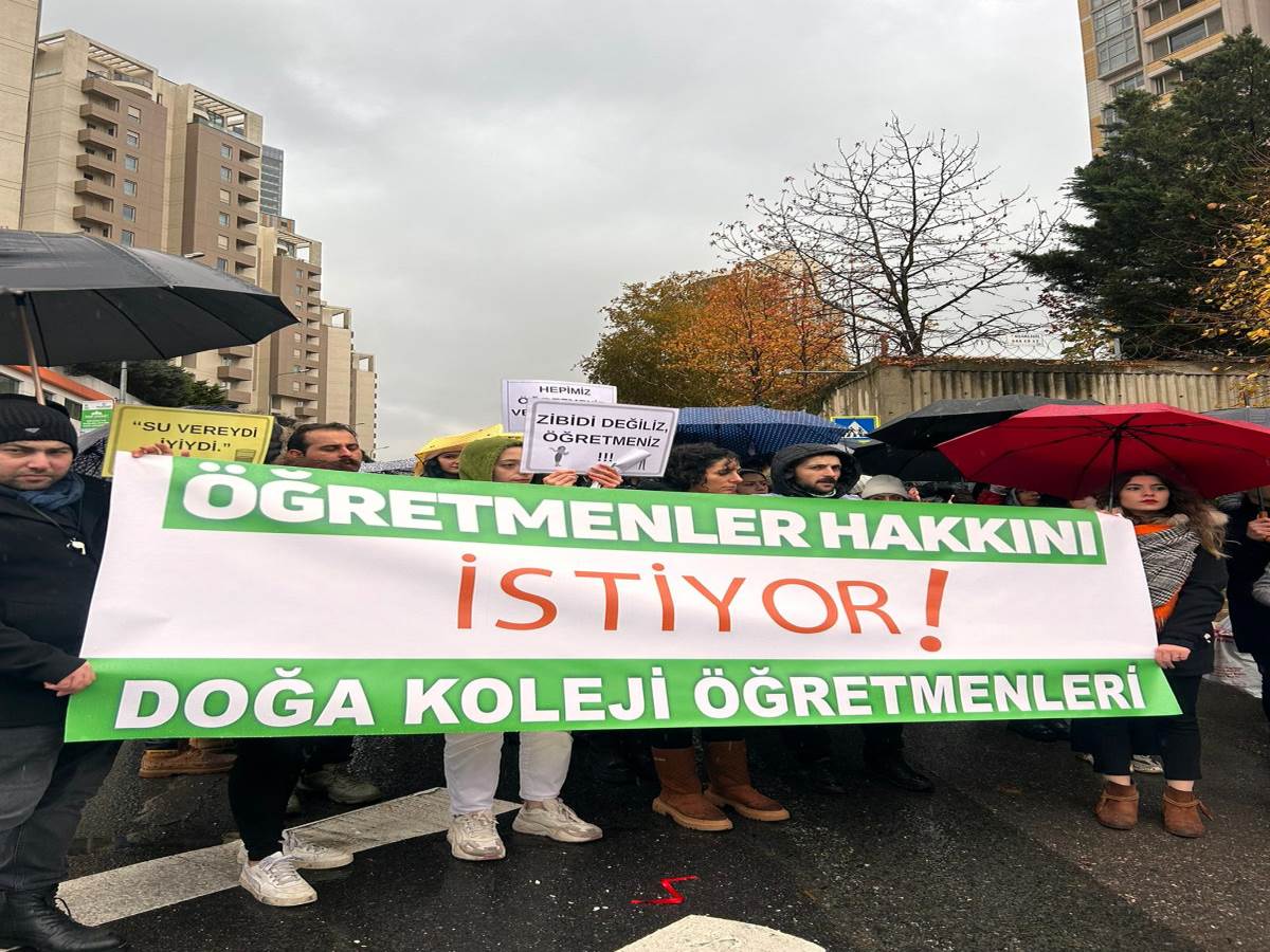 Doğa Koleji bünyesinde görev yapan öğretmenler, 9 Aralık’ta Doğa Okulları Genel Merkezi önünde eylem yapmıştı.