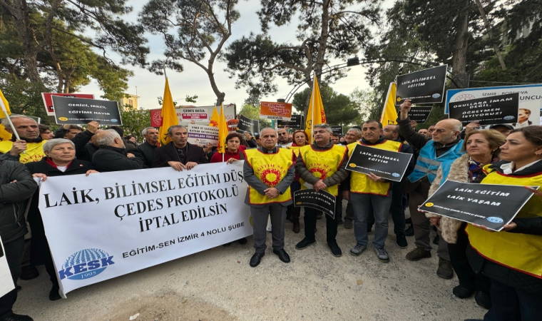Eğitim Sen Genel Başkanı Kemal Irmak’ın da katıldığı protestoda “Laik bilimsel eğitim düşmanı ÇEDES protokolü iptal edilsin” pankartı açan grup sık sık, “Karanlığa teslim olmayacağız”, “Laik eğitim laik yaşam”, “Okullarda imam istemiyoruz”, “Tarikata değil eğitime bütçe”, “Laik bilimsel demokratik eğitim”, “Tarikatın bakanı Yusuf Tekin istifa” sloganları attı.