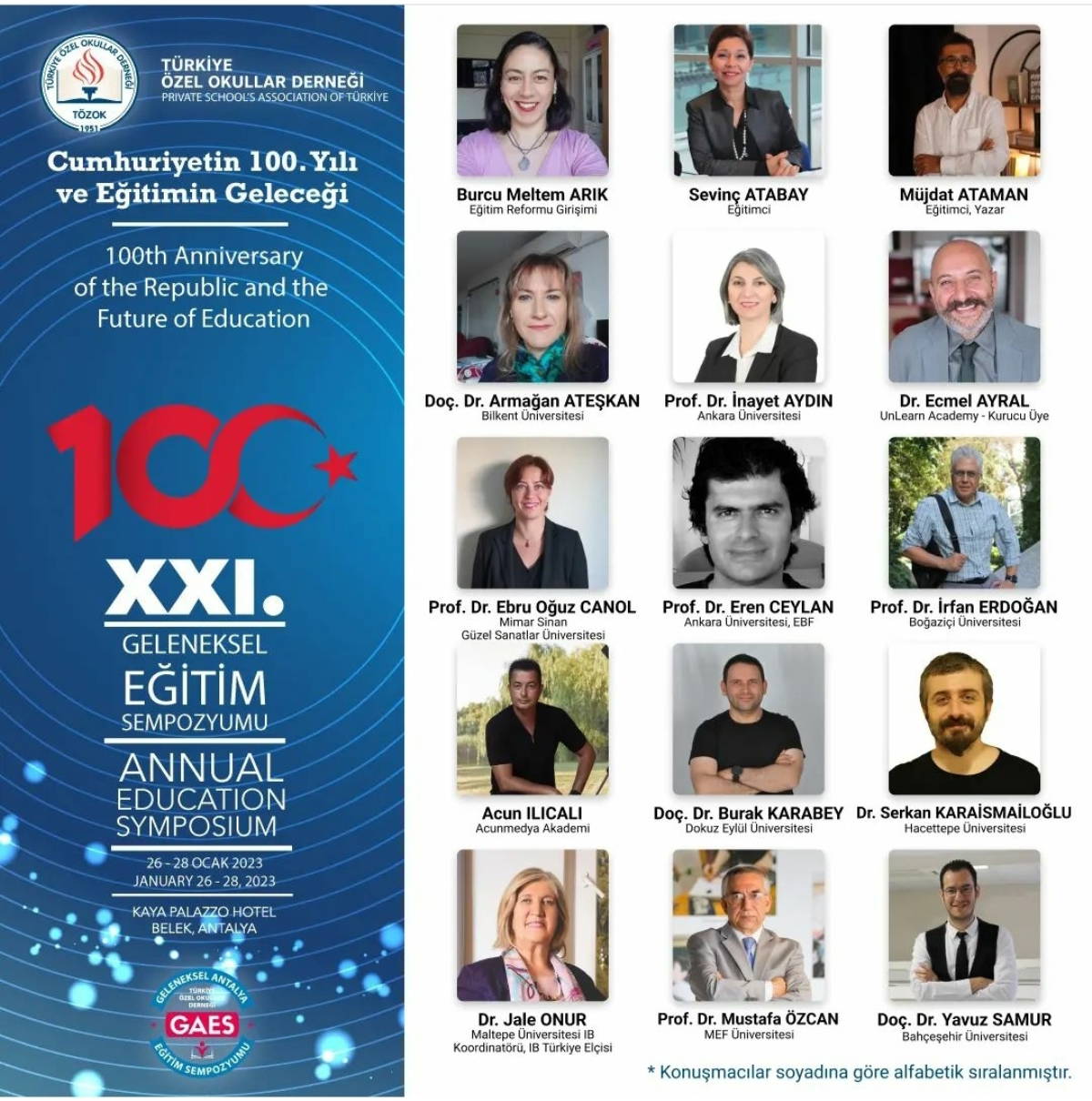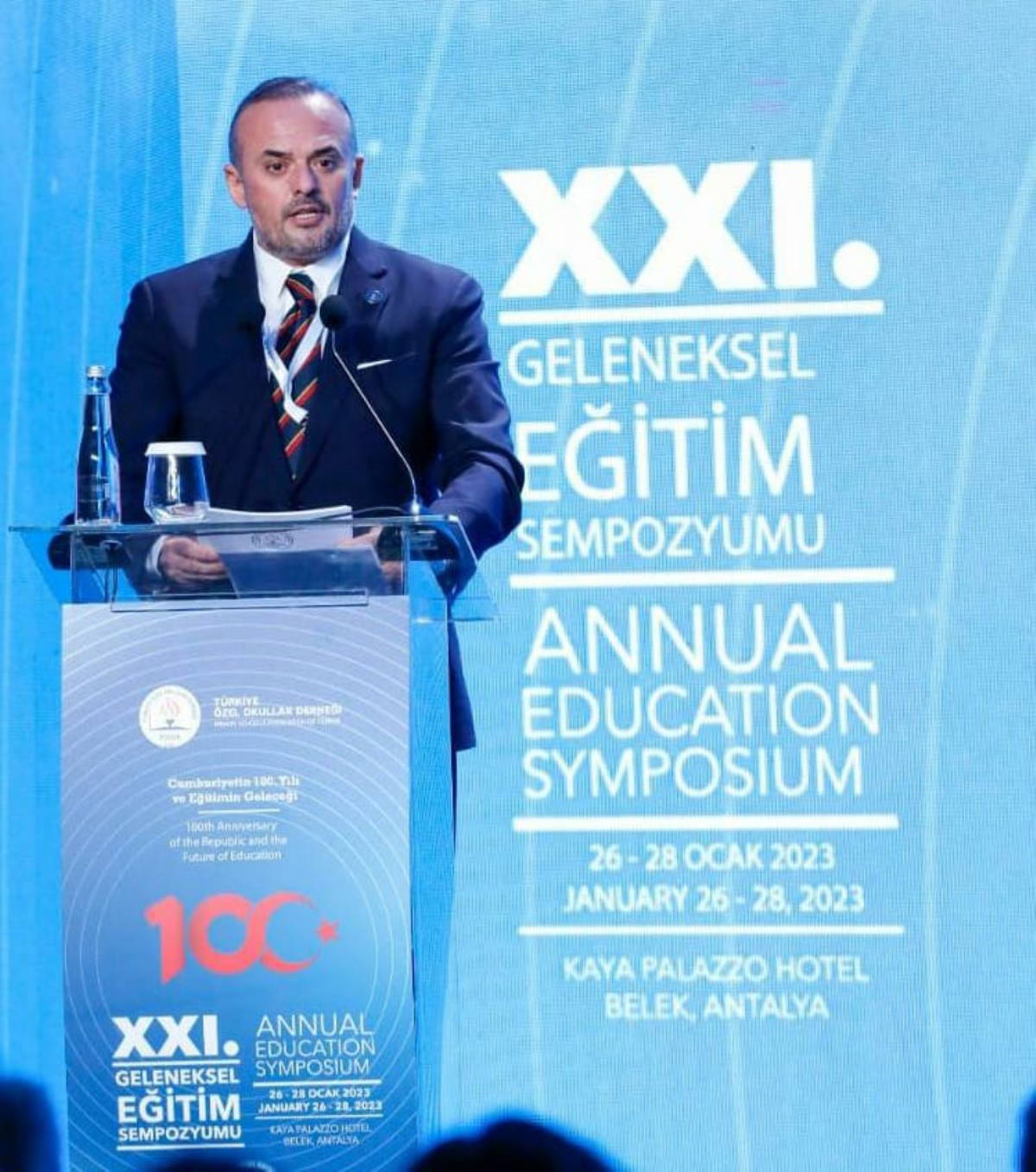 "TÖZOK etkinlikleri içinde, gelenek haline gelmiş olan Antalya Sempozyumlarını, “Eğitimin Davosu” olarak ifade etmemizin yanlış olmayacağı kanaatindeyim. Yirmi birincisini gerçekleştirdiğimiz bu yılki Antalya Sempozyumu “Cumhuriyetin 100. Yılı ve Eğitimin Geleceği” ana temasıyla eğitim camiasıyla paylaşılmaktadır.