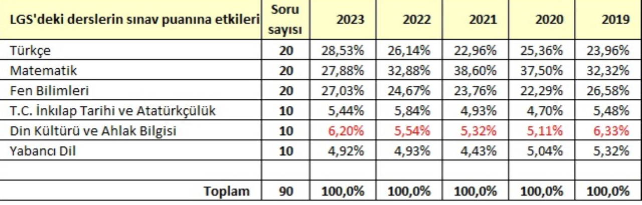 2 Haziran’da yapılan LGS’de 10 adet din kültürü ve ahlak bilgisi sorusu soruldu. İnkılap Tarihi ve Atatürkçülük ile yabancı dil testlerinin soru sayısı da 10 oldu.
