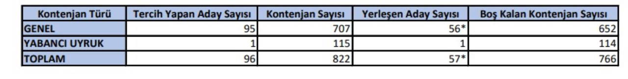 2022-YDUS 1. GRUP EK YERLEŞTİRME SONUÇLARINA İLİŞKİN SAYISAL BİLGİLER