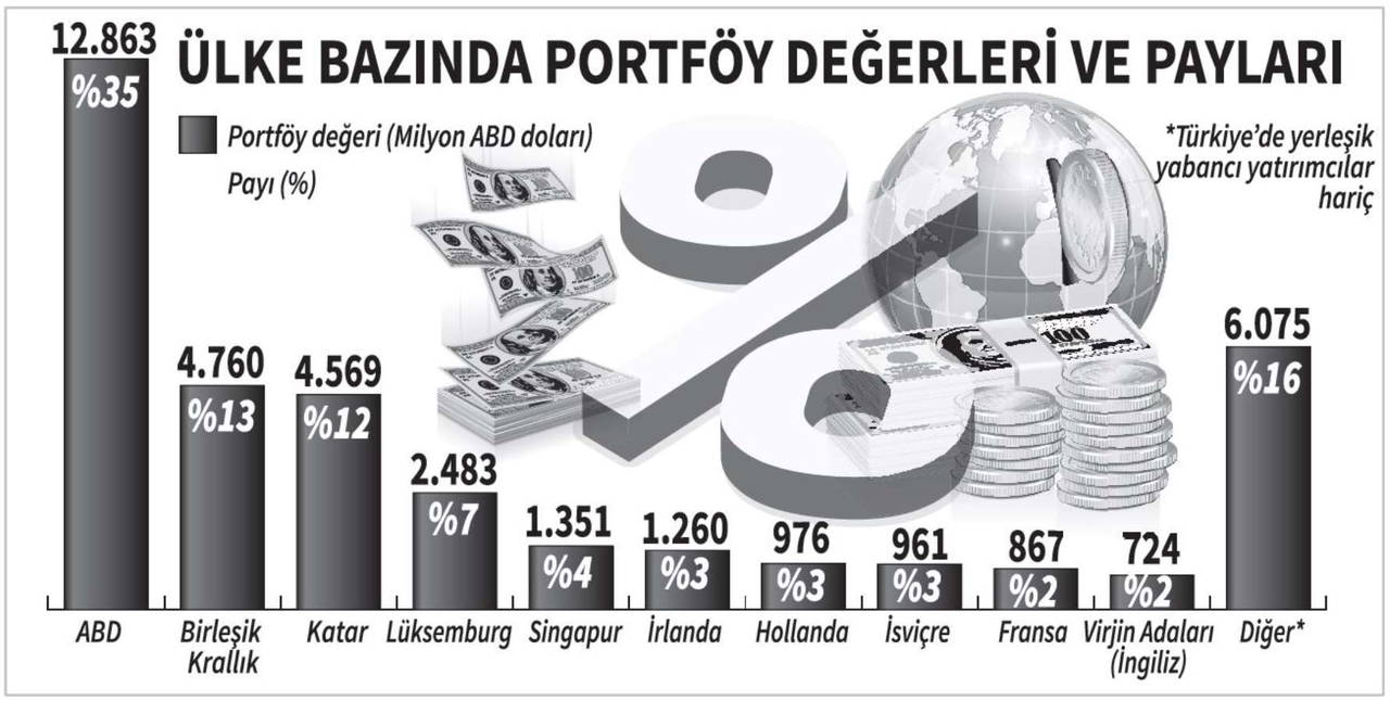 2020 yılı sonunda Borsa İstanbul’da en yüksek portföy değerine sahip ülke olan Katar 2022’de üçüncü sıraya geriledi. 2020’de Katar’da yerleşik yatırımcılar Borsa İstanbul’daki toplam yabancı yatırımların yüzde 31’ine sahipken 2022 sonunda payı 19 puan gerilemeyle yüzde 12’ye düştü. Aradan geçen sürede Katar’da yerleşik yatırımcıların Borsa İstanbul’daki portföy değeri ise yüzde 232 düşüşle 15 milyar 160 milyon dolardan 4 milyar 569 milyon dolara geriledi. Üç yılda 10 milyar 591 milyon dolar Katar sermayesi Türkiye’den çıktı.