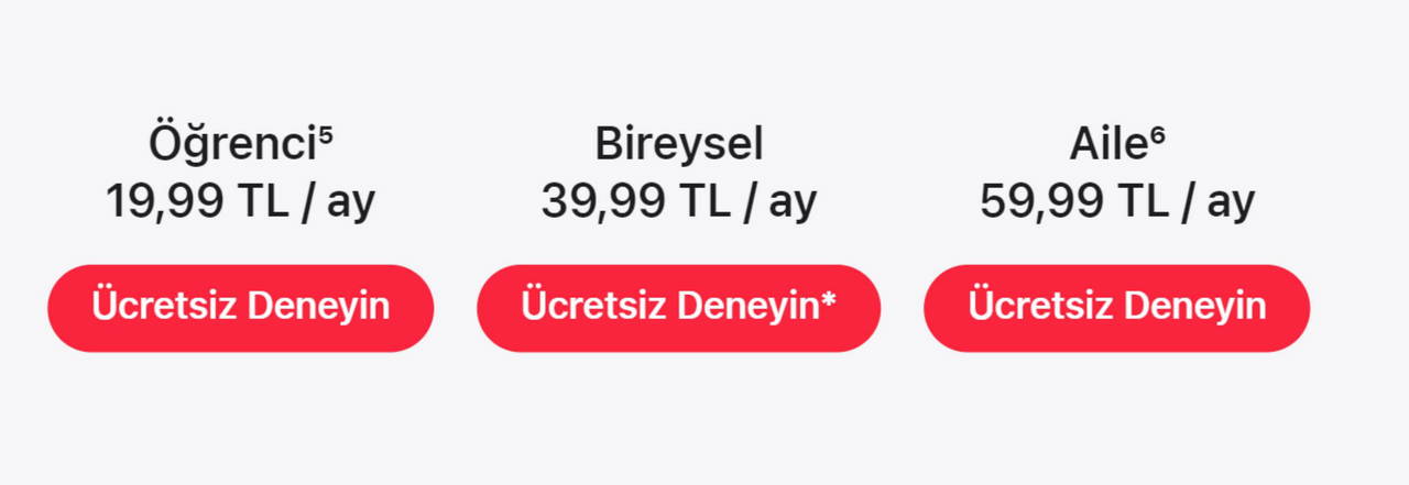 Yeni zamlar ile birlikte Apple Music'te en ucuz paket 20 TL’ye, en pahalı paket de 60 TL’ye dayandı.