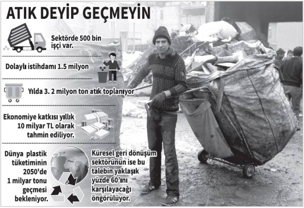 “Bugün dünyada yılda 370 milyon ton olan plastik tüketiminin, 2050’de 1 milyar tonu geçmesi bekleniyor. Küresel geri dönüşüm sektörünün ise 2050’deki bu talebin yaklaşık yüzde 60’ını karşılayacağı öngörülüyor. Bugün sokak ve caddelerimizde gördüğümüz atık toplayıcı vatandaşlarımız, maddi imkânsızlıklar nedeni ile bu işi bir geçim kapısı olarak görmekte olsalar da geri dönüşüm ekonomimiz için hayati işlev yüklenmekteler. Yerel yönetimlerin tam anlamıyla ilgilenmediği çok önemli bir işi yapmaktalar.”