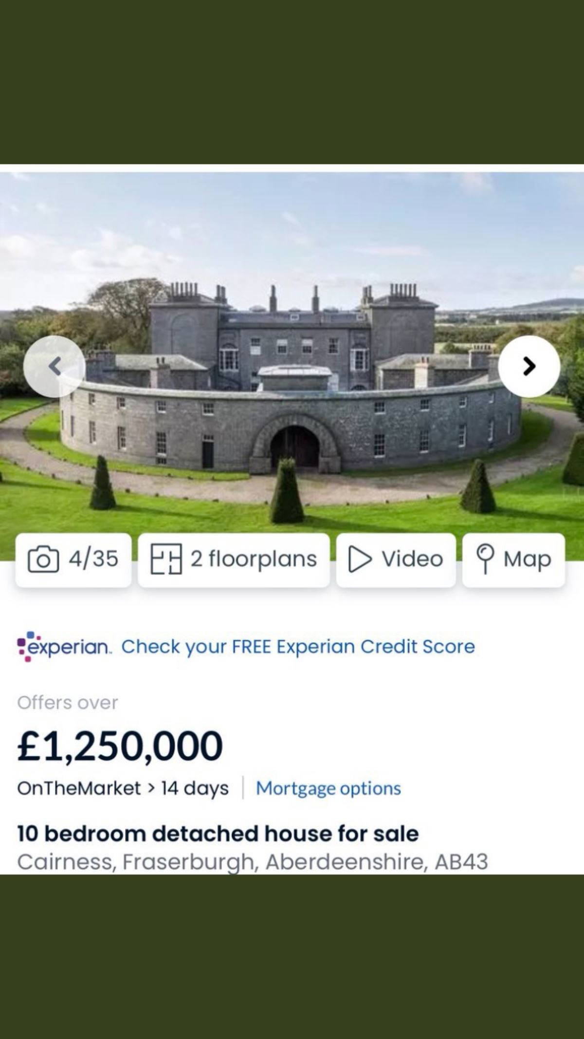 Buna karşın İskoçya’da bulunan ve satışa çıkarılan Cairness House şatosunun fiyatı ise 1 milyon 250 bin sterlin. Bu rakam bugünkü kurla 29.1 milyon liraya karşılık geliyor.