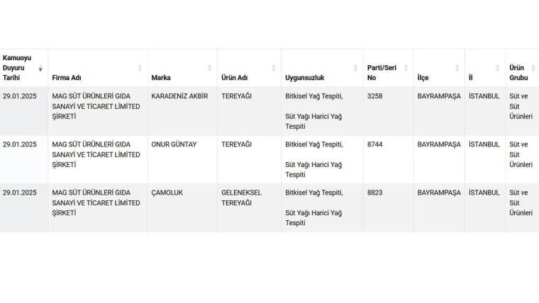 Bakanlığın yaptığı denetimlerde, bazı markaların tereyağı adı altında farklı içeriklerle ürün sattığı ortaya çıktı. Türkiye genelinde yurttaşların güvenli gıdaya ulaşmasını sağlamak amacıyla yapılan denetimlerin sonucunda, söz konusu ürünlerin piyasaya sürüldüğü belirlendi.