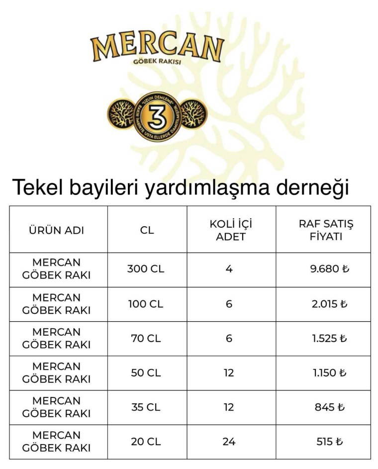 Efe grubuna gelen yüzde 7 oranında zammın ardından bir zam da Mercan göbek rakı grubuna geldi.
