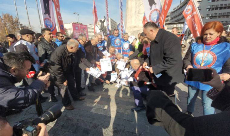 Birleşik Kamu İşgörenleri Sendikaları Konfederasyonu (Birleşik Kamu-İş), memur ve emekli maaşlarına yapılan yüzde 30’luk zammı, bugün Ankara’daki Ulus Meydanı’nda maaş bordrolarını yakarak protesto etti.