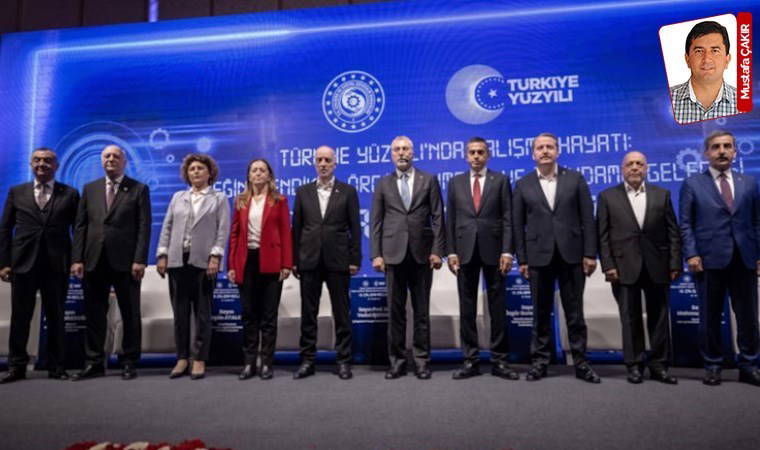 Kapsamlı bir hazırlık yapılmadan, “Türkiye Yüzyılında Çalışma Hayatı: Emeğin, Sendikal Örgütlenmenin ve İstihdamın Geleceği” konusuyla gerçekleştirilen iki gün sürecek Çalışma Meclisi dün başladı. Bir otelde düzenlenen toplantıda panellerin gerçekleştirildiği platformun bir yanında Türkiye Cumhuriyeti’nin Kurucusu Mustafa Kemal Atatürk’ün, diğer yanında da Cumhurbaşkanı Recep Tayyip Erdoğan’ın fotoğrafı yer aldı. Çalışma Meclisi’nin açılışında başkanlığını Çalışma ve Sosyal Güvenlik Bakanı Vedat Işıkhan’ın yaptığı panel düzenlendi. Panele Türk-İş Başkanı Ergün Atalay, Hak-İş Başkanı Mahmut Arslan, DİSK Başkanı Arzu Çerkezoğlu, Memur-Sen Başkanı Ali Yalçın, Türkiye Kamu-Sen Başkanı Önder Kahveci, KESK Eş Genel Başkanı Ayfer Koçak, TİSK Başkanı Özgür Burak Akkol, TOBB Yönetim Kurulu üyesi Mehmet Büyüksimitci ile TZOB Başkanı Şemsi Bayraktar katıldı.