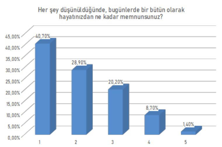 Araştırmaya katılan emeklilerin yüzde 70’i hayatından memnun olmadığını belirtirken, yüzde 99’u ülkenin ekonomik koşullarından, yüzde 84’ü sağlık sisteminden, yüzde 98’i ise demokrasinin işleyişinden memnuniyetsizliklerini dile getirdi. Genel toplumun memnuniyet seviyelerine göre emeklilerin yaşam kalitesi, ekonomik zorluklar nedeniyle daha da olumsuz etkilendiği belirtildi.