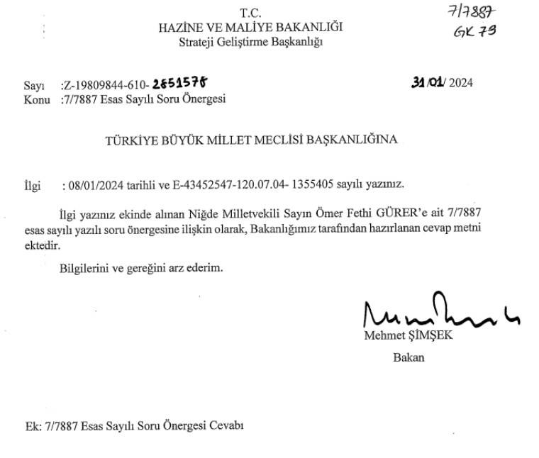 CHP Niğde Milletvekili Ömer Fethi Gürer, şu soruların da Bakan Mehmet Şimşek tarafından yanıtlanmasını istedi: