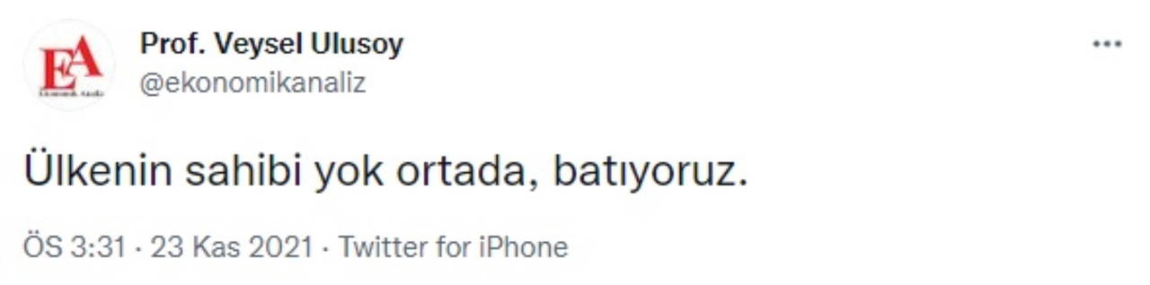Ulusoy, bir sonraki paylaşımında ise "Ülkenin sahibi yok ortada, batıyoruz" ifadelerini kullandı.