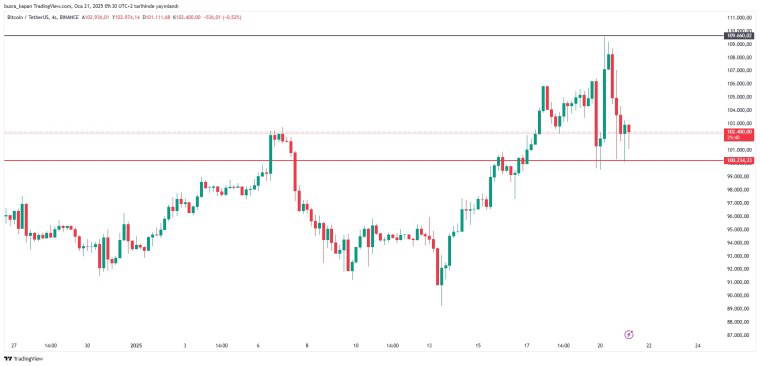 Kripto paralarda en büyük değer kaybı Bitcoin’de yaşandı. Dün, 109 bin 600 dolar seviyesine yükselerek rekor kıran Bitcoin, beklenen açıklamaların yapılmamasıyla yüzde 8’den fazla değer kaybederek 100 bin 234 dolara geriledi. Yeni günde Bitcoin 102 bin 420 dolardan işlem görmeye devam ediyor.