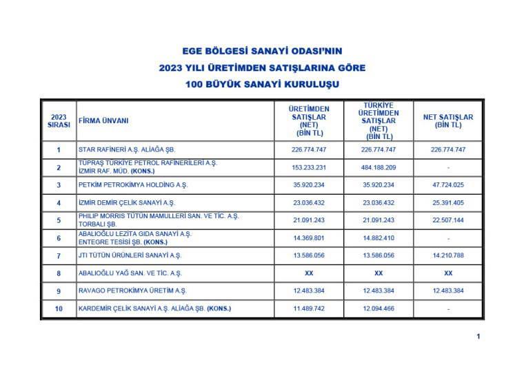 Ege Bölgesi'nin en büyük sanayi kuruluşu geçen yıl Star Rafineri oldu. Tüpraş İzmir Rafinerisi ikinci, Petkim Petrokimya üçüncü sırada yer aldı. Ege Bölgesi Sanayi Odası (EBSO) tarafından "2023 yılı üretimden satışlar" kriterine göre yapılan Ege'nin 100 büyük sanayi kuruluşu araştırmasının sonuçları, İzQ İnovasyon Merkezi'nde düzenlenen toplantıyla açıklandı.