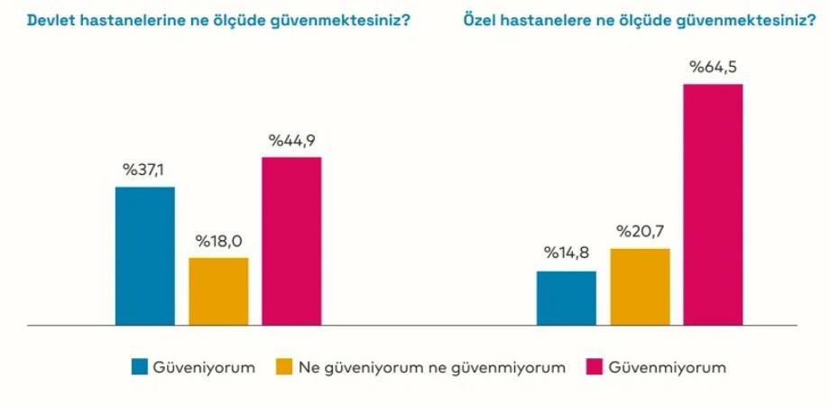 Devlet hastanelerine güven oranı yüzde 37,1 olarak kaydedilirken, özel hastanelerde bu oran yüzde 14,8’e geriledi. Randevu süreleri ise Avrupa Yakası'nda 30 güne, Anadolu Yakası'nda ise 26 güne çıkmış durumda.