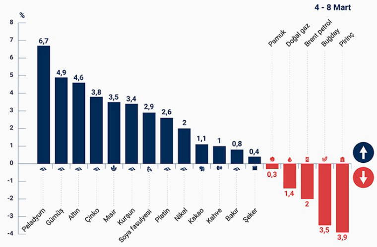 Emtia piyasasında, geçen hafta sert yükselişler görüldü.
