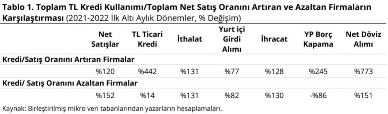 10haber sitesinde yer alan habere göre, Türkiye Cumhuriyet Merkez Bankası’nın, Tarık Alperen Er, Aykut Şengül, İbrahim Yarba imzalı ‘Ani Kredi Büyümesi ve Firma Davranışı: Bir Vaka Analizi’ araştırmasına göre, 2022’nin ilk 6 ayında, kredi/satış oranını artıran şirketlerin net döviz alımı yüzde 773 arttı.