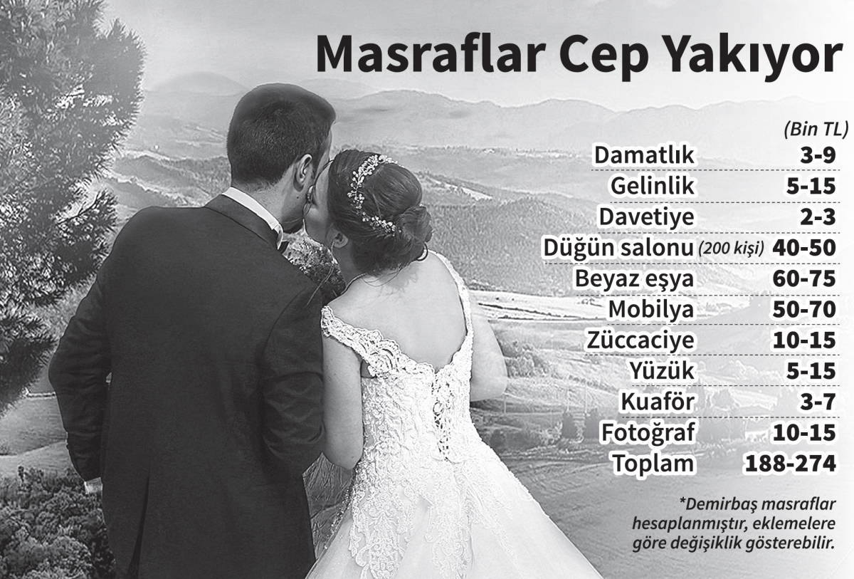 Yaz ayları Türkiye için düğün mevsimidir geleneksel olarak. Bu yıl da bir milyona yakın çiftin evlenmesi bekleniyor. Beyaz eşyacısından kuyumcusuna esnafın da bir yıl boyunca heyecanla beklediği bir dönem. Ancak ne yazık ki bu yıl mevsim büyük sorunlarla birlikte başlıyor. Evlenecek çiftlerin mobilyadan beyaz eşyaya katlanan fiyatlarla maliyeti yüzde 100’ün üzerinde artarken en az 200 bin TL masraf yapmak zorundalar.