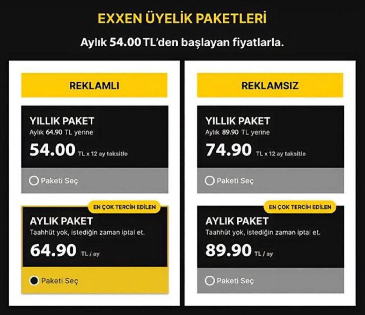 Gibi gibi popüler yapımlarının yanı sıra Şampiyonlar Ligi ve Avrupa Ligi'nin de yayın haklarını elinde bulunduran Exxen, tüm abonelik fiyatlarına 1 Mayıs itibarıyla zam yapılacağını açıkladı.