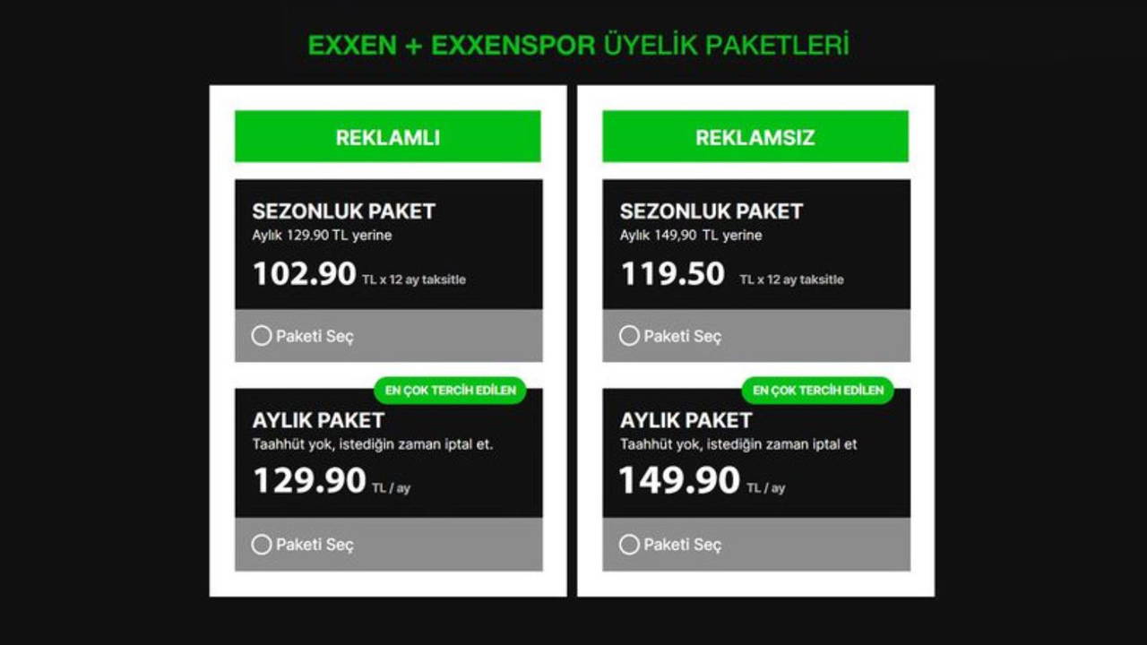Netflix'in reklamsız başlangıç paketi 45,99 TL'ydi. Aynı özelliklere sahip paketin Exxen'deki fiyatı, an itibarıyla 58,50 TL'ye kadar çıkmış oldu
