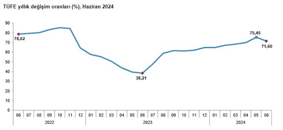 TÜFE haziran ayında yıllık bazda yüzde 71,60 oldu, aylık ise yüzde 1,64 olarak kayıtlara geçti.