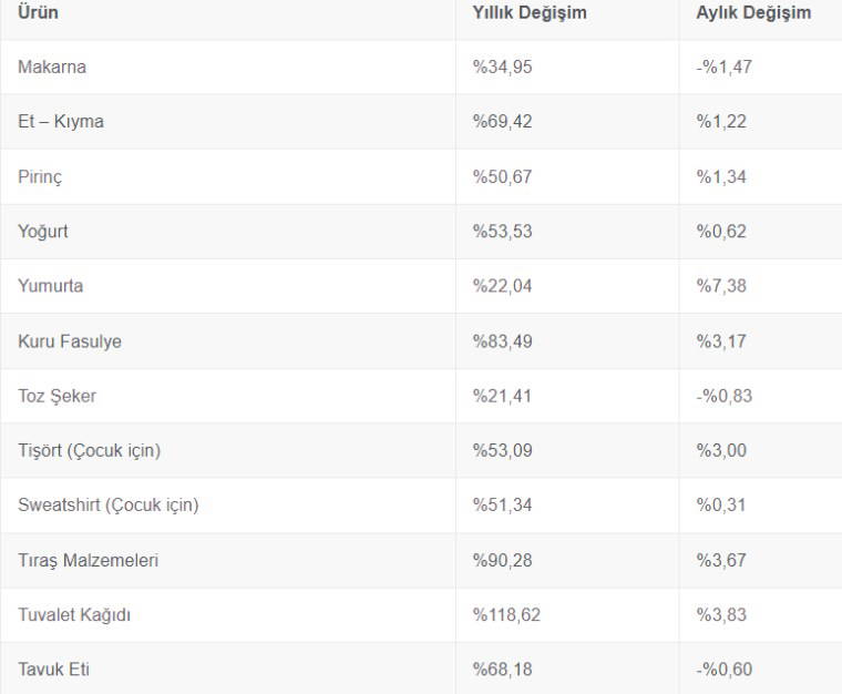 İPA'nın araştırmasına göre temel tüketim maddeleri arasında geçen yılın eylül ayına göre en yüksek artış, yüzde 69,4 ile et-kıyma ürünlerinde oldu.
