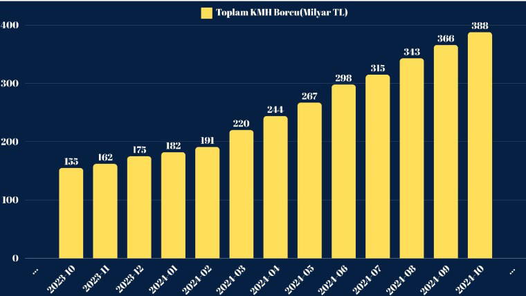 Kredili mevduat hesabı kullanan kişi sayısı bir yılda 1.6 milyon kişi artarak 29.7 milyona ulaşırken, toplam kredili mevduat hesabı borcu da yüzde 151 artarak 388.3 milyar liraya yükseldi.