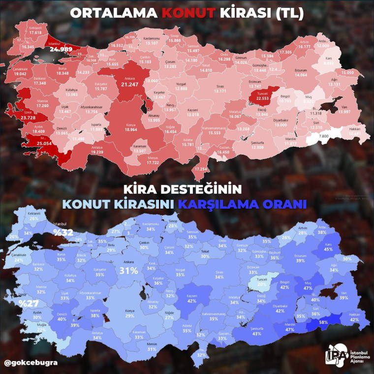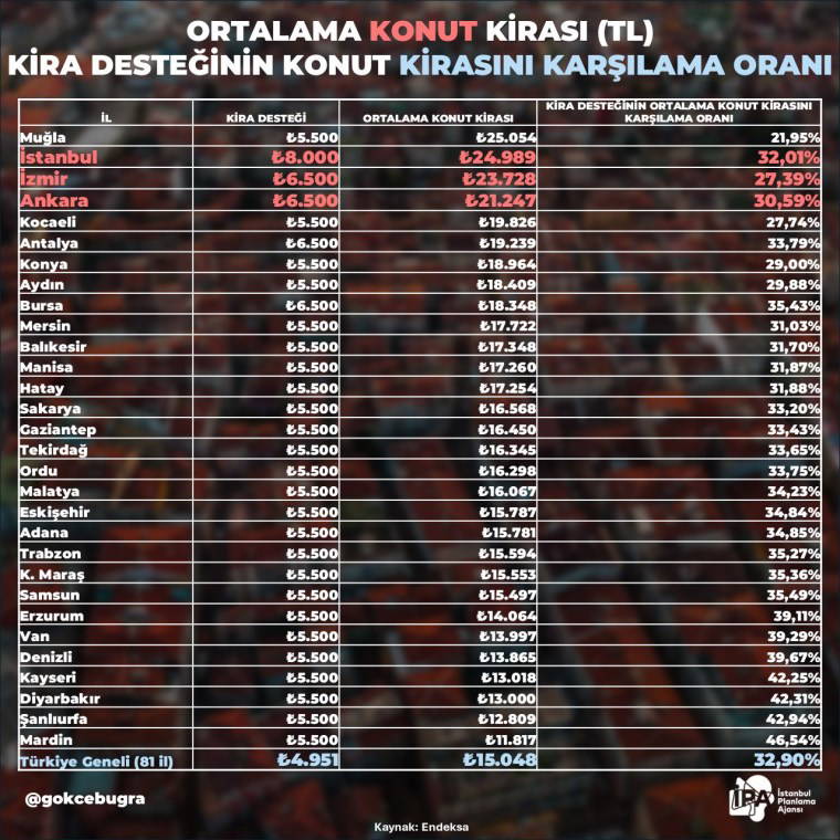 İstanbul Planlama Ajansı Başkanı Buğra Gökçe, 30 büyükşehirin konut kiralarına ilişkin veriler paylaşarak kira desteklerinin yetersiz olduğunu söyledi.