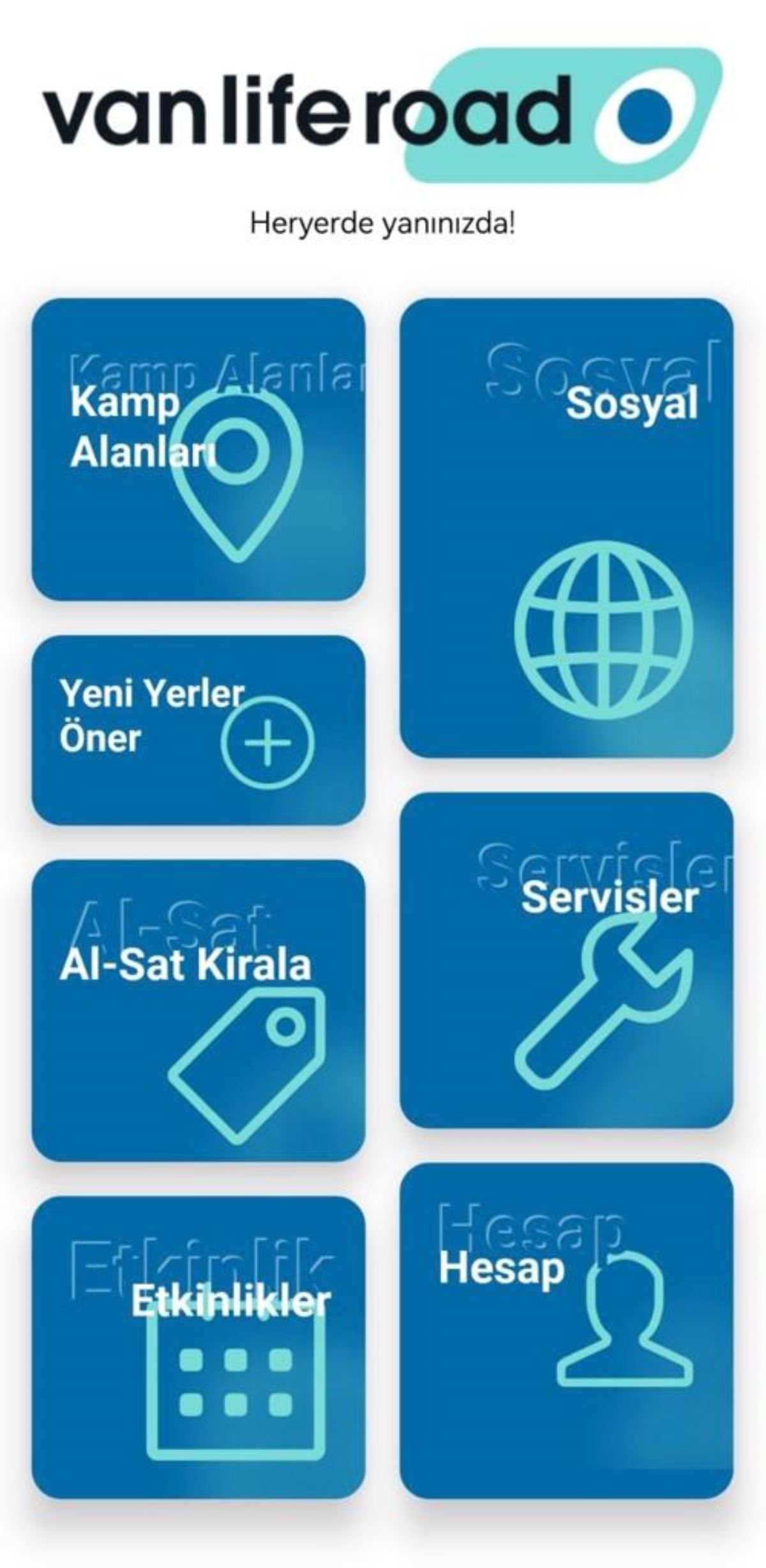 Kamp hayatı için Vanliferoad mobil uygulama ile web sitesi geliştirildi.