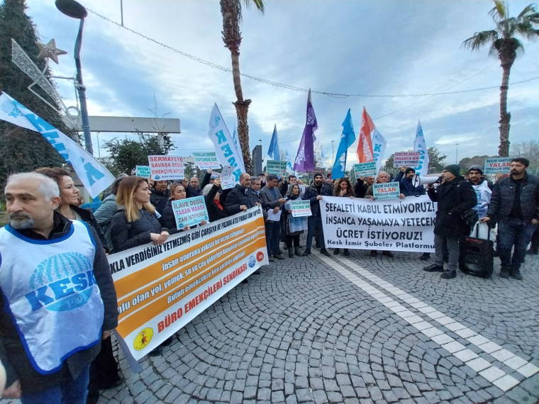 KESK İzmir Şubeler Platformu, enflasyon karşısında ücretlere yapılan düşük zamlarla alım gücünün her geçen gün erimesine karşı eylem yaptı.