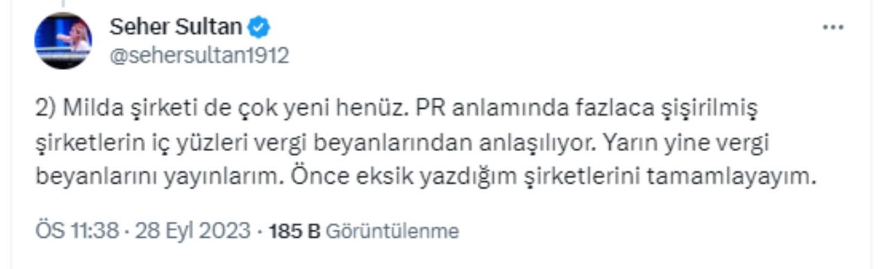 Seher Sultan; X (eski adı Twitter) hesabından şunları paylaştı: