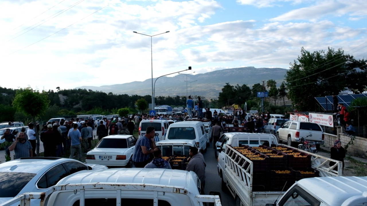 Mersin'in Mut ilçesinde, kayısı üreticileri fiyatların düşük olduğunu belirterek, Mut-Karaman karayoluna ürünlerini döküp eylem yaptı.