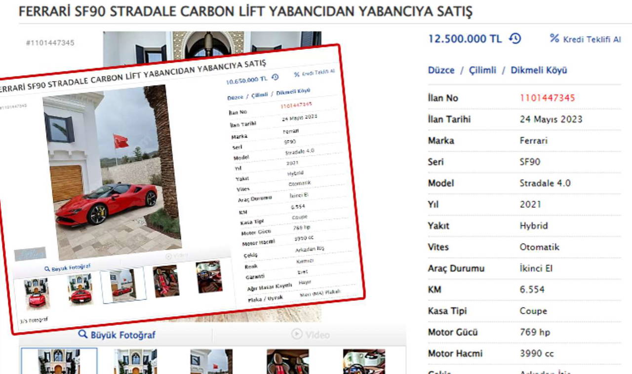 Kenan Sofuoğlu'nun aracı ilan sitesinde 'Ferrari SF90 Stradale Carbon Lift yabancıdan yabancıya satış' başlığıyla, 12 milyon 500 bin TL'ye satışta.