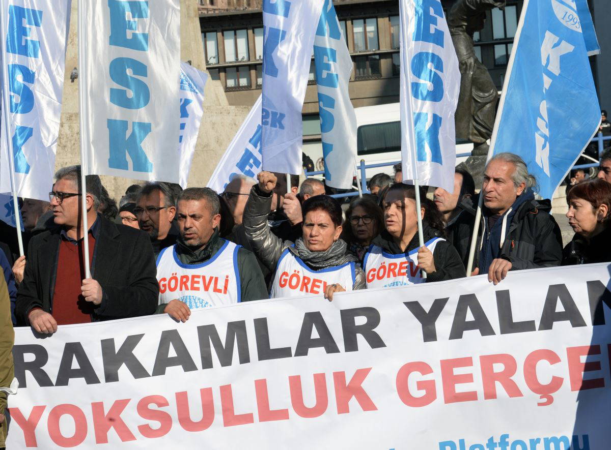 “Rakamlar yalan, yoksulluk gerçek” yazılı pankart açan sendika üyeleri “Sadaka değil, toplusözleşme”, “insanca yaşamak istiyoruz” sloganları attı. Protestoya CHP Ankara Milletvekili Yıldırım Kaya ile bazı meslek örgütleri ve dernekler de destek verdi. KESK Ankara Şubeler Platformu Dönem Sözcüsü Sacit Ünalmış, enflasyona göre maaş zammının “sıfır zam” anlamına geldiğini söyledi.